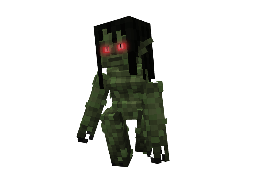 SCP-811 is a female humanoid with long black hair, elongated limbs, swamp-green skin, and a swollen abdomen. It spawns during nighttime in swamp and mangrove biomes and cannot drown, making it perfectly suited for water. When SCP-811 is not submerged, it constantly emits particles of black sweat. Any player that collides with SCP-811 immediately suffers wither damage from direct contact. SCP-811 becomes aggressive when hungry or provoked, hunting nearby animals or players to feed. While out of water and in an aggressive state, it can also spit acid that harm players from a distance. It can also dash forward if aggressive. Its behavior makes swamp exploration at night extremely dangerous.
