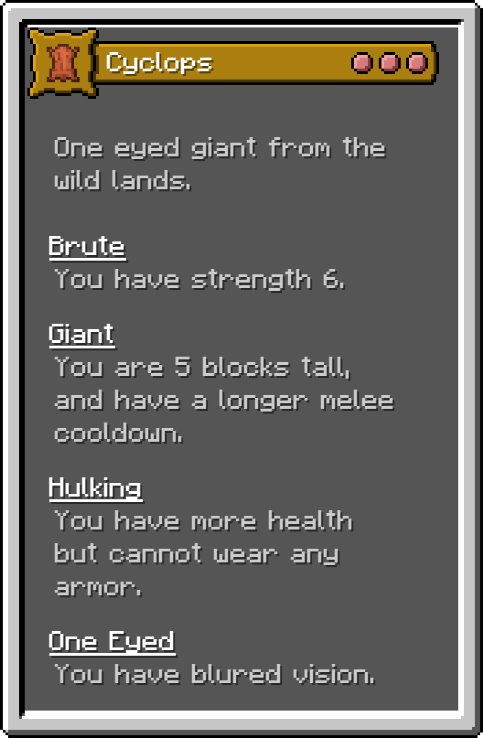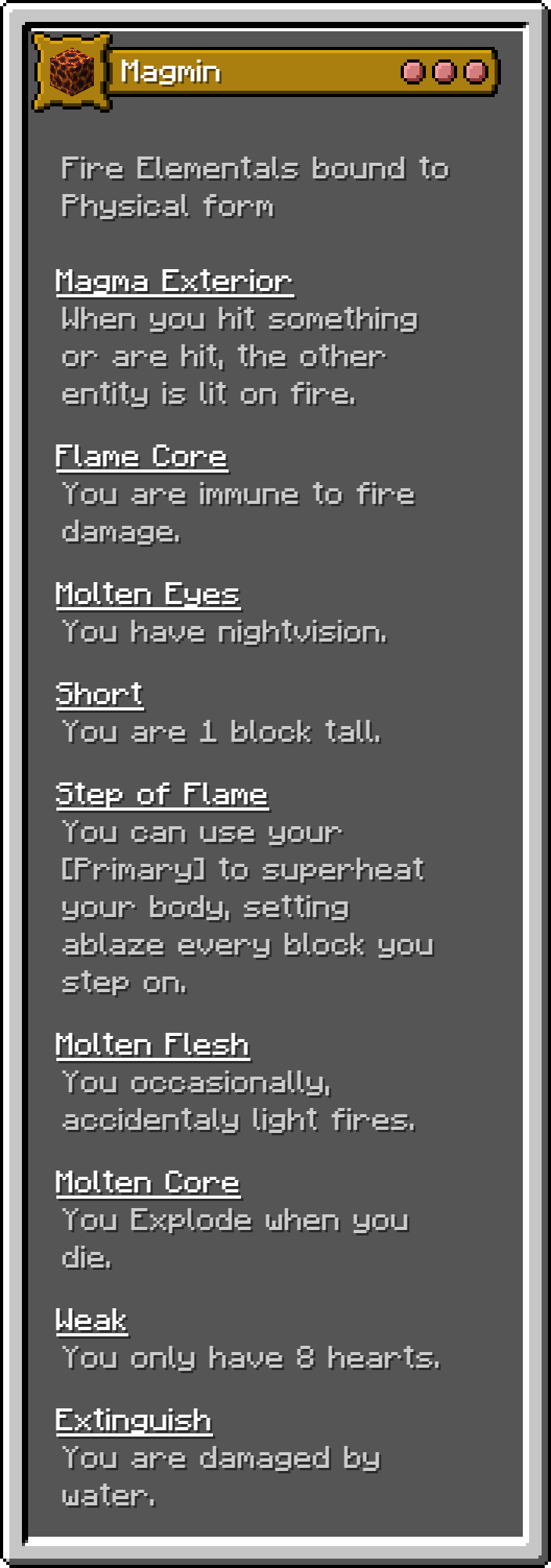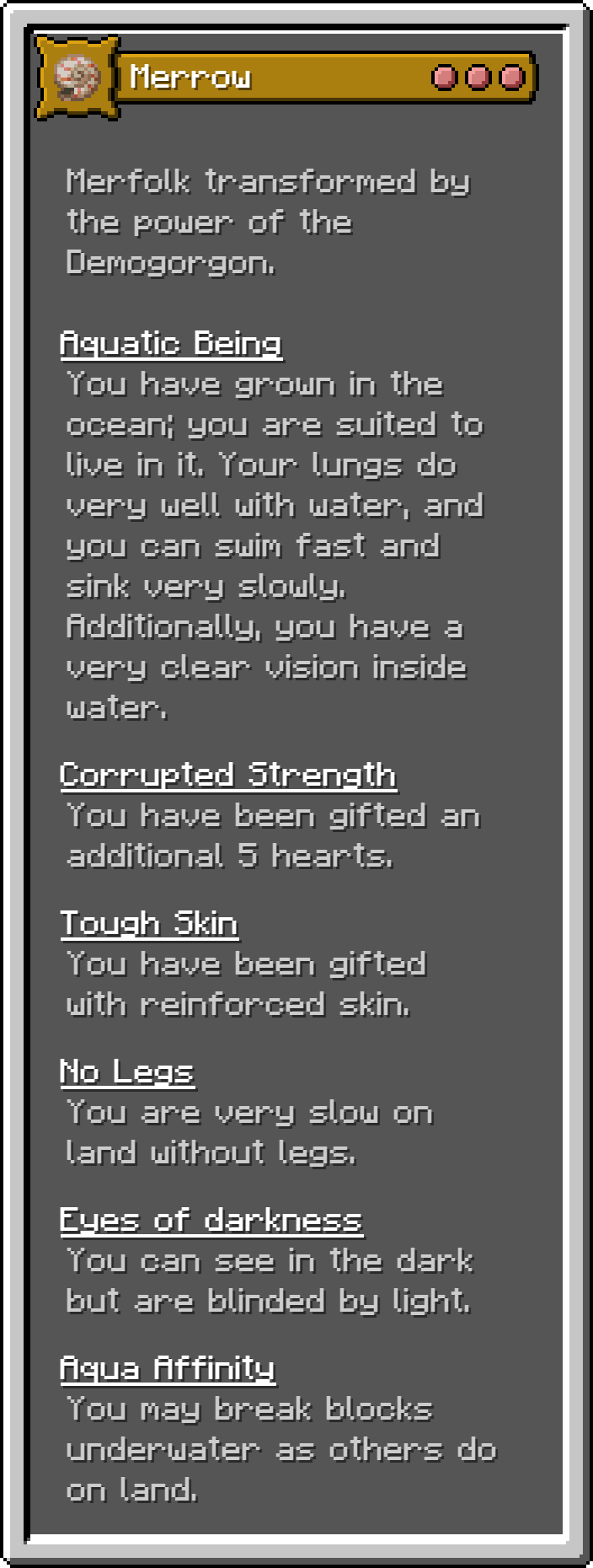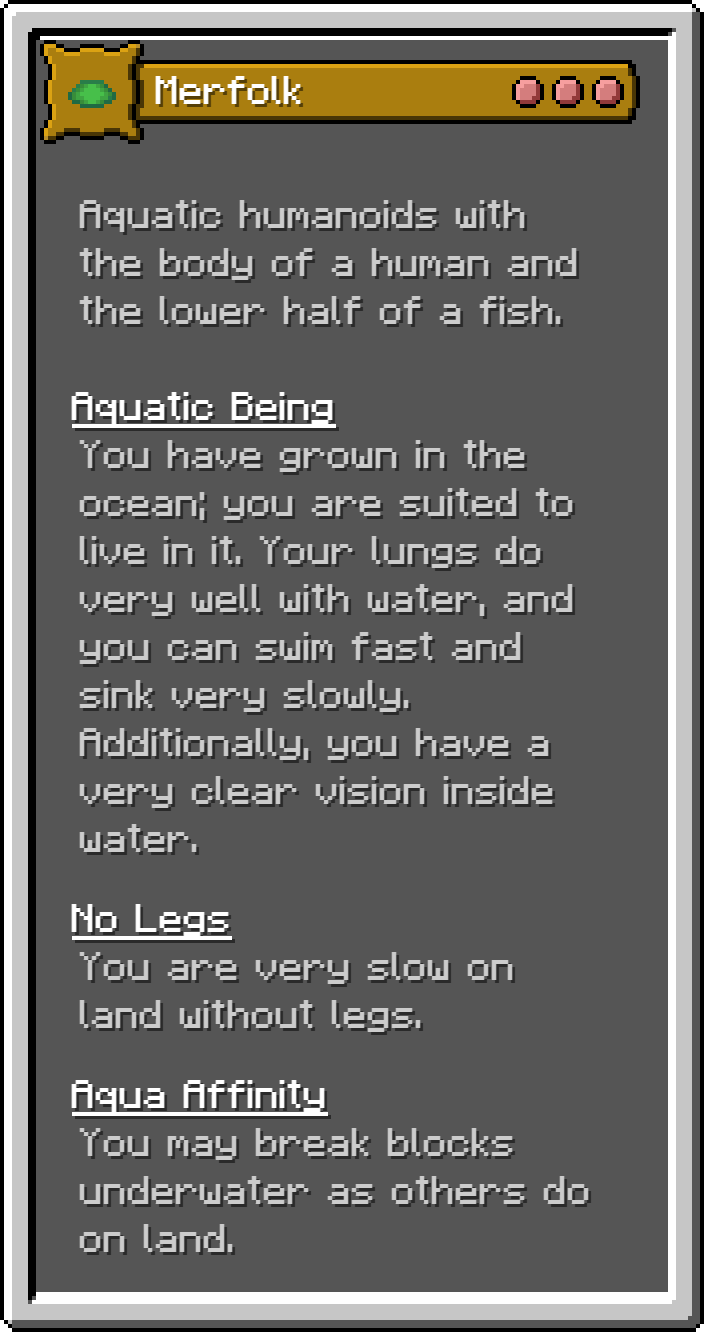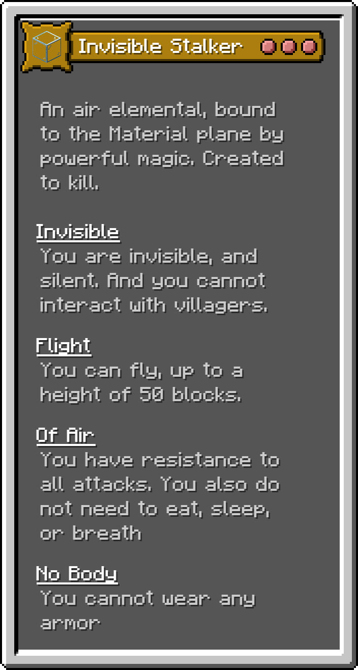 This Fabric mod adds 17 of the monsters for the D&D 5e Monster Manual into Minecraft as playable origins. These are not meant to be balanced, but true to the game.