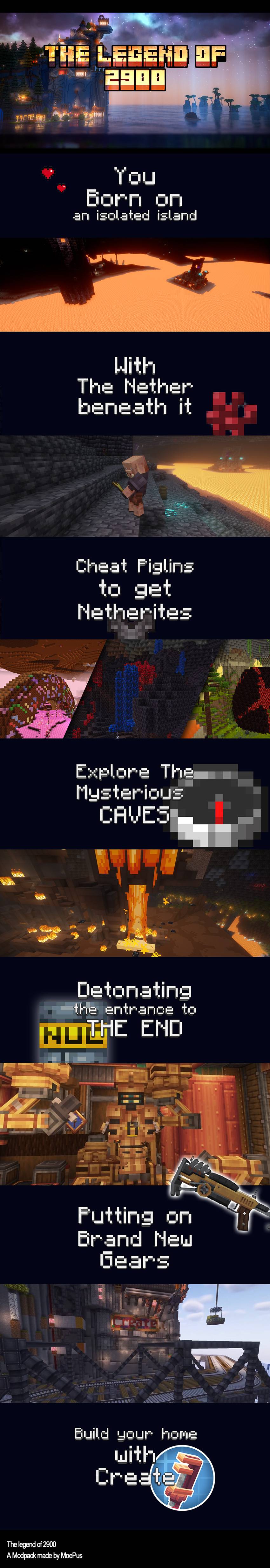 Nuclear war breaks out, the nether world collapses, lava overflows into the main world, global warming, glaciers melt, and the main world is submerged with only a few small islands