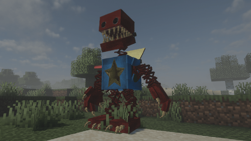 Huggy Wuggy is added by the Poppy Playtime IC mod. He has 50 health, and spawns like a normal mob. He has loud footsteps when he walks, but he likes to sneak around, preventing you from hearing him. More info can be found on the wiki.