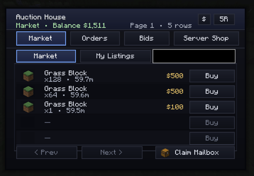 Make your own customizable in-game server shop and multiplayer auction house with Econ, a secure, multiplayer-safe server economy and auction system designed specifically for servers and SMPs with friends