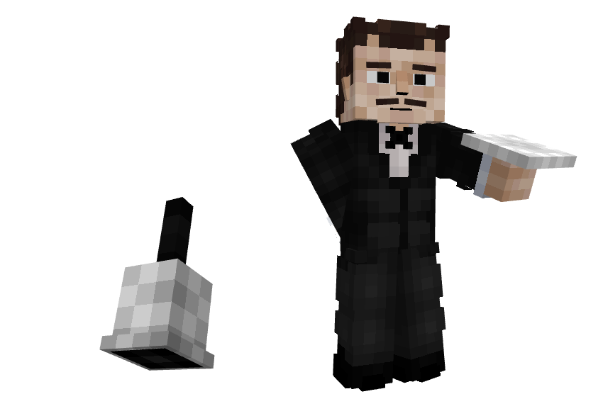 SCP-662 appears as a small silver handbell that can be picked up from the ground. When picked up, SCP-662 can be placed back on the ground or can be rung. When the player rings it, Mr. Deeds will appear nearby, but only if no other butler is currently active. Mr. Deeds is a calm, polite servant who attacks hostile mobs and follows the player. He will also send text messages whenever he talks and is interacted with. When right clicked, a menu will open where you can select a variety of tasks: Healing the player when they are below 15 health, bringing a variety of food when their hunger drops below 15 points, repairing the item held in the main hand, lighting dark areas below light level 9, extinguishing the player if they are burning, playing music, or answering the question “Who are you?”. The player can also command him to disappear at any time.