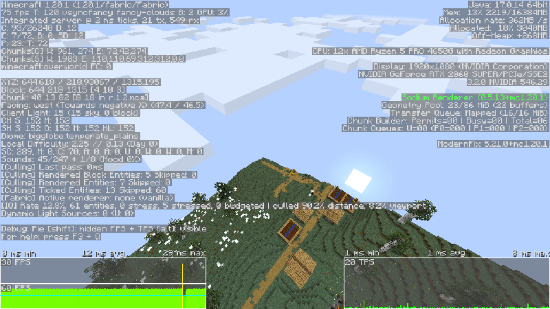This Modpack is an optimized Big Globe template (1.20.1) to run with less resources than normally (this Modpack does not make magic but it helps to improve in general the performance and high load on the client or server side)