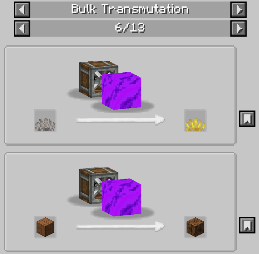 - Mass transmutation recipes that breathe life back into dead materials