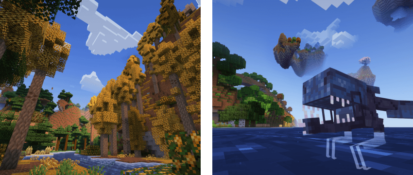 - Playing either with a higher render distance than normal to see as much of the terrain as possible,