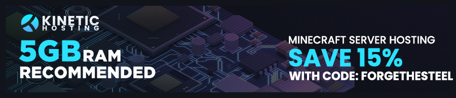 Need a server? Try Kinetic Hosting there prices are pushed down as low as possible. Don't forget to use code ForgeTheSteel to save 15% on minecraft server hosting, plus it support me at the same time :)