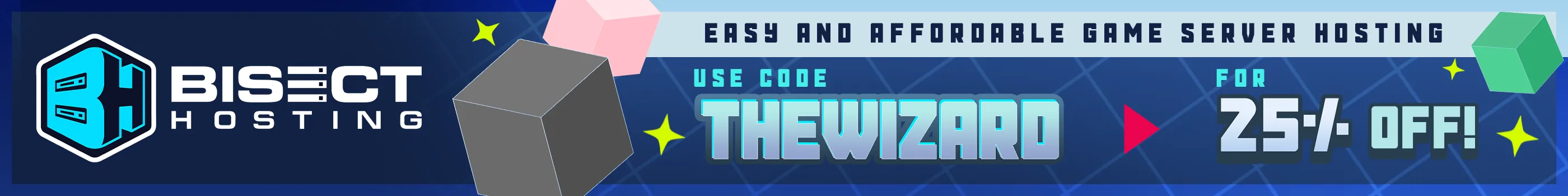 Get your own Minecraft server today and enjoy endless adventures with your friends! With top performance and reliable uptime, our servers guarantee a smooth and fun gaming experience for everyone. Use code THEWIZARD for a 25% discount!