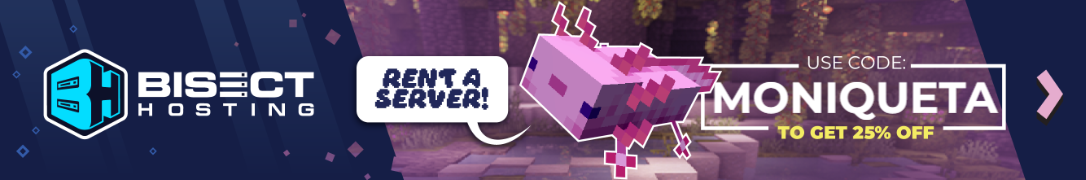 Enjoy the modpack with others and supporting me by hosting your game server through BisectHosting. With servers available in 20 locations and over ten years of experience, they provide an exceptional gaming experience. Their automated modpack installer and updater makes managing your server hassle-free, while their 24/7 support ensures you're never left in the dark. New customers can use promo code "Moniqueta" to receive a 25% discount on their first month! Click on the banner to start, if it doesn't work, click here.