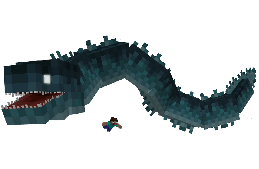 SCP-3000 can be first spotted leaping from the water in deep ocean biomes before later appearing naturally. Towering in size and incredibly dangerous, SCP-3000 emits a constant Nausea effect to players nearby. SCP-3000 is almost impossible to kill, it is capable of destroying boats and even breaking blocks in its path. A single hit can be fatal, making it one of the most dangerous aquatic threats in existence. While rare, an encounter with SCP-3000 is rarely survived if it see's you as it's prey.