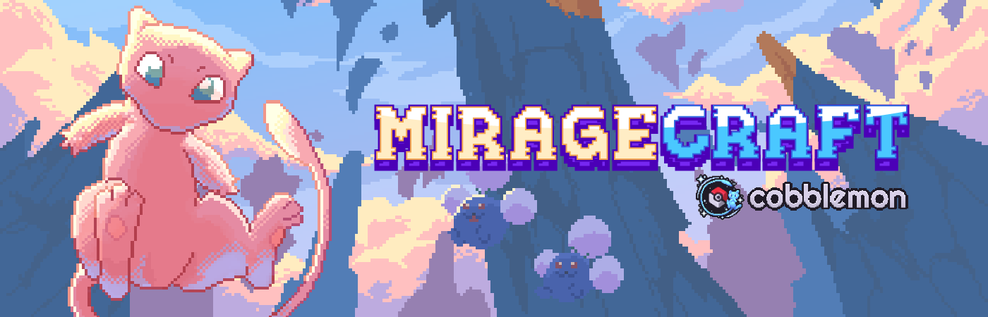 If you love Pokémon and Minecraft, why not try both at the same time? MirageCraft is a server running the Cobblemon mod, which recreates the classic Pokémon games in a Minecraft world. You can catch, train, battle, trade, and breed over thousands of Pokémon, all while building and crafting items in the style that has made Minecraft the most popular game on the planet. Choose a starter and journey across a wide open map, crafting poké balls to catch more for your team. Settle down and build the most impressive house you can imagine while training your Pokémon to take on gyms or other players! MirageCraft strives to create the experience of living in a Pokémon world.