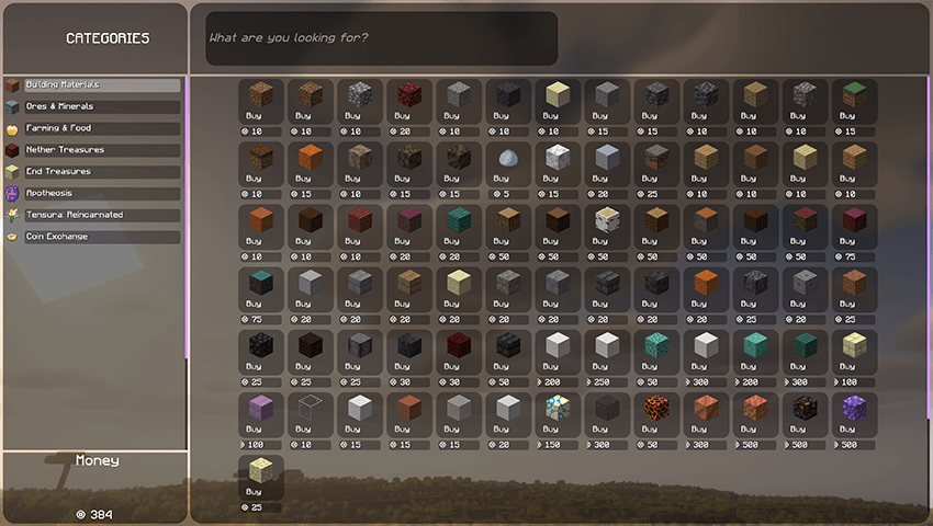 Mjรถllmile's Finances Full economy system with shops where you can buy almost everything, exchange trophies, master skills, and convert currencies.