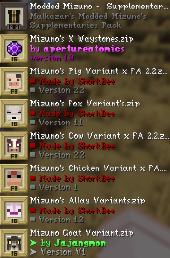 This modpack is a collection of my favorite mods and Mizuno resource packs. Something cozy, simple, and serving the purpose of being able to use everyone's favorite Mizuno textures again!