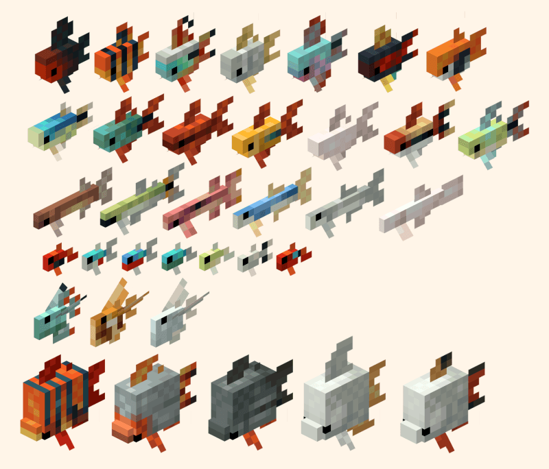 A mod focused on aquarium keeping and fish farming, as well as fish genetics and other utilities for all your aquarium-building needs, like aquarium glass, fishnets for unbucketable mobs, and water plants, along with 2 new music discs composed by Ninni and MessySlimey!